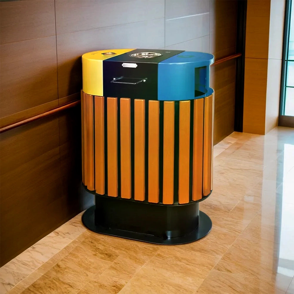 Discover unparalleled sophistication and efficiency with our Elegant Dual-Compartment Recycling Bin. Crafted from iron and finished with a powder coating, this bin is designed to resist bending and aging, ensuring enduring beauty. Its anti-corrosion process guarantees long-term functionality. Adhering to environmental norms, it features an eco-friendly paint. Our recycling bin blends seamlessly into any high-end environment.