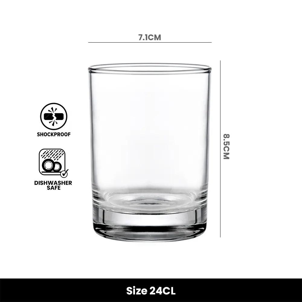 • Generous Capacity: With a 24 cl (240 ml) capacity, this tumbler is perfect for serving a variety of drinks, including water, juice, whiskey, and cocktails.