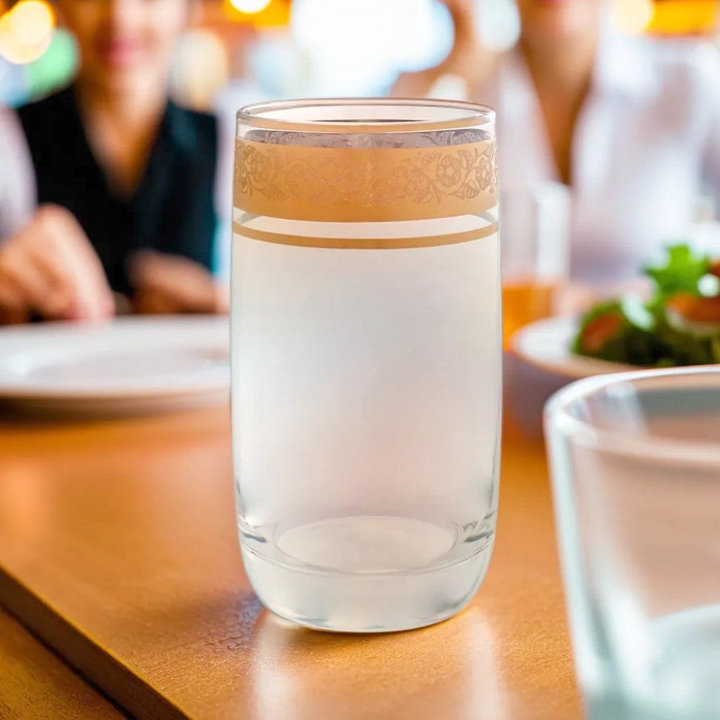he GlaSStar Venice set includes 6 decorated glasses (330ml each) from Europe. Made from transparent glass, they enhance beverage service in hotels and restaurants with style. Part of the Venice collection, they offer elegant tabletop presentations, ideal for serving a variety of drinks and making dining experiences in hospitality settings.
