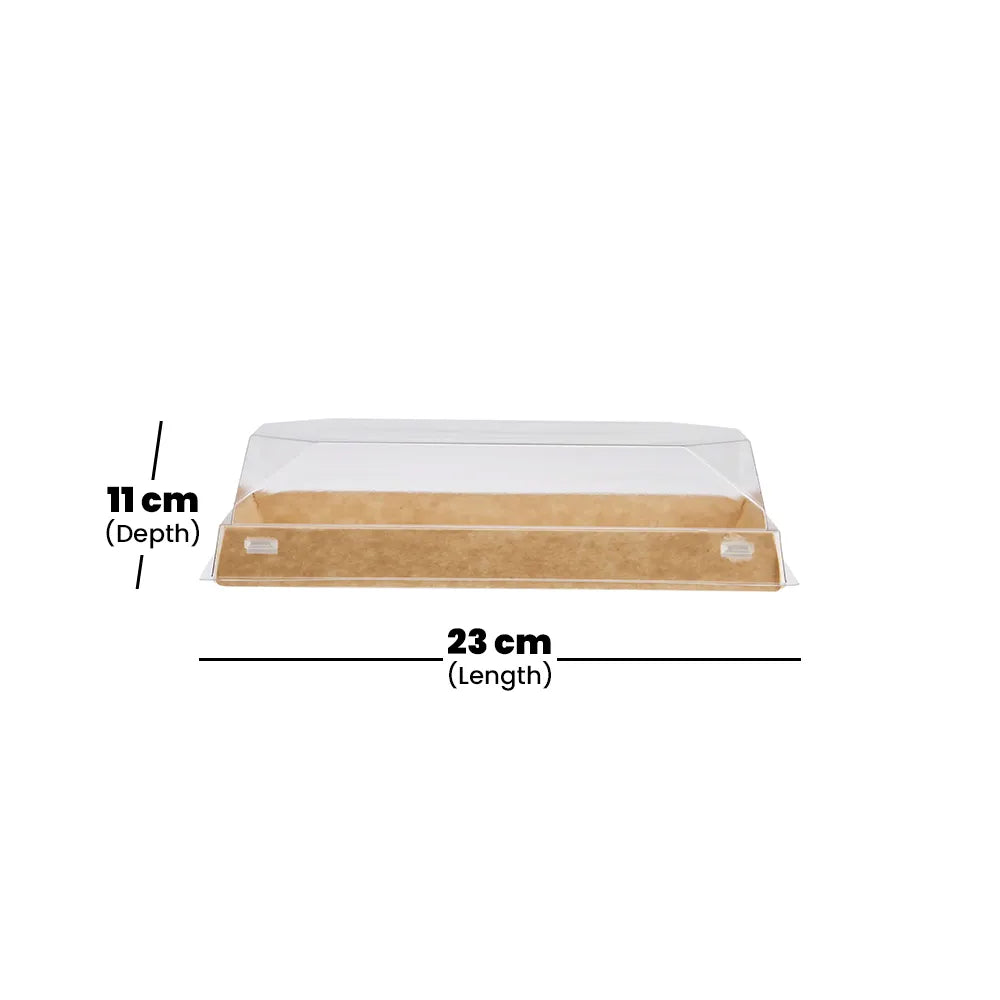 Hotpack Paper Sushi Containers with Clear Lid offer a sleek solution for serving sushi and other delicacies. The containers come in a natural brown color, ensuring a visually appealing presentation. Crafted with quality in mind, they maintain freshness and are convenient for takeaway or catering needs. Enjoy a sustainable, stylish, and functional option for your culinary creations.