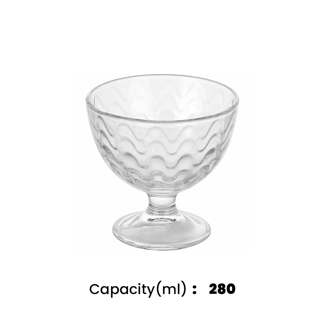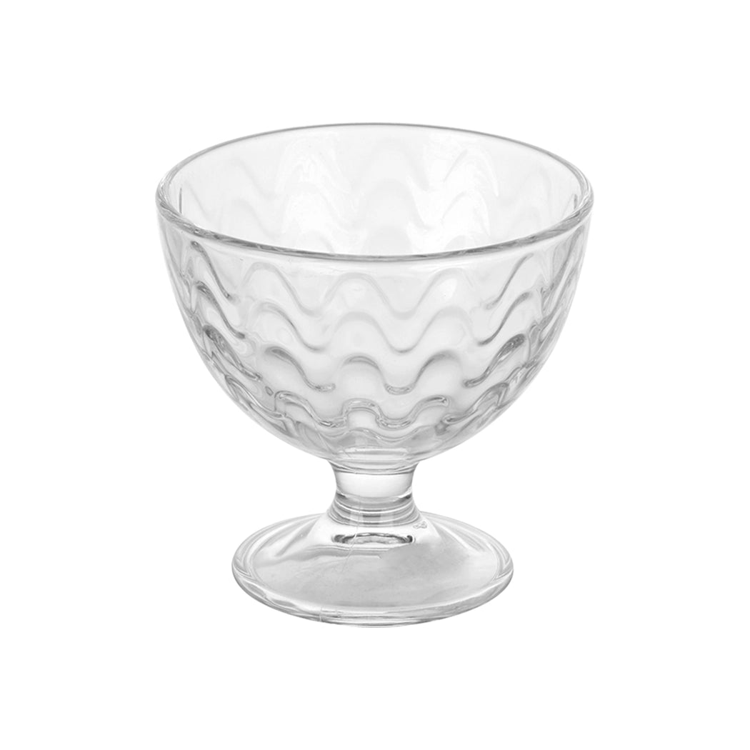 The "Malva Wave" 280 ml ice-cream bowl by Osz offers elegant dessert presentation in European hotels and restaurants. Made from transparent glass, it enhances the visual appeal of ice creams and desserts. Packaged conveniently in sets of 12, it combines style with practicality for hospitality settings.
