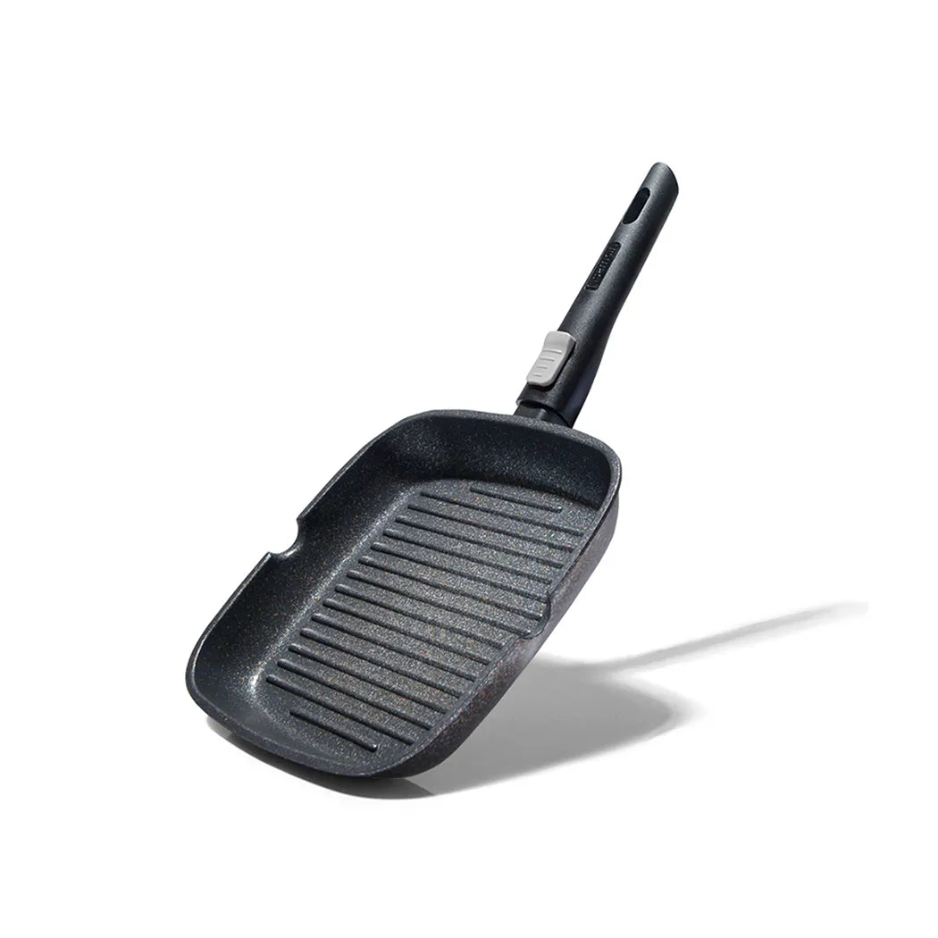 Rebusto Series Platinum Non-stick Grill Pan with Detachable Handle in Black Color, 24 x 4 cm