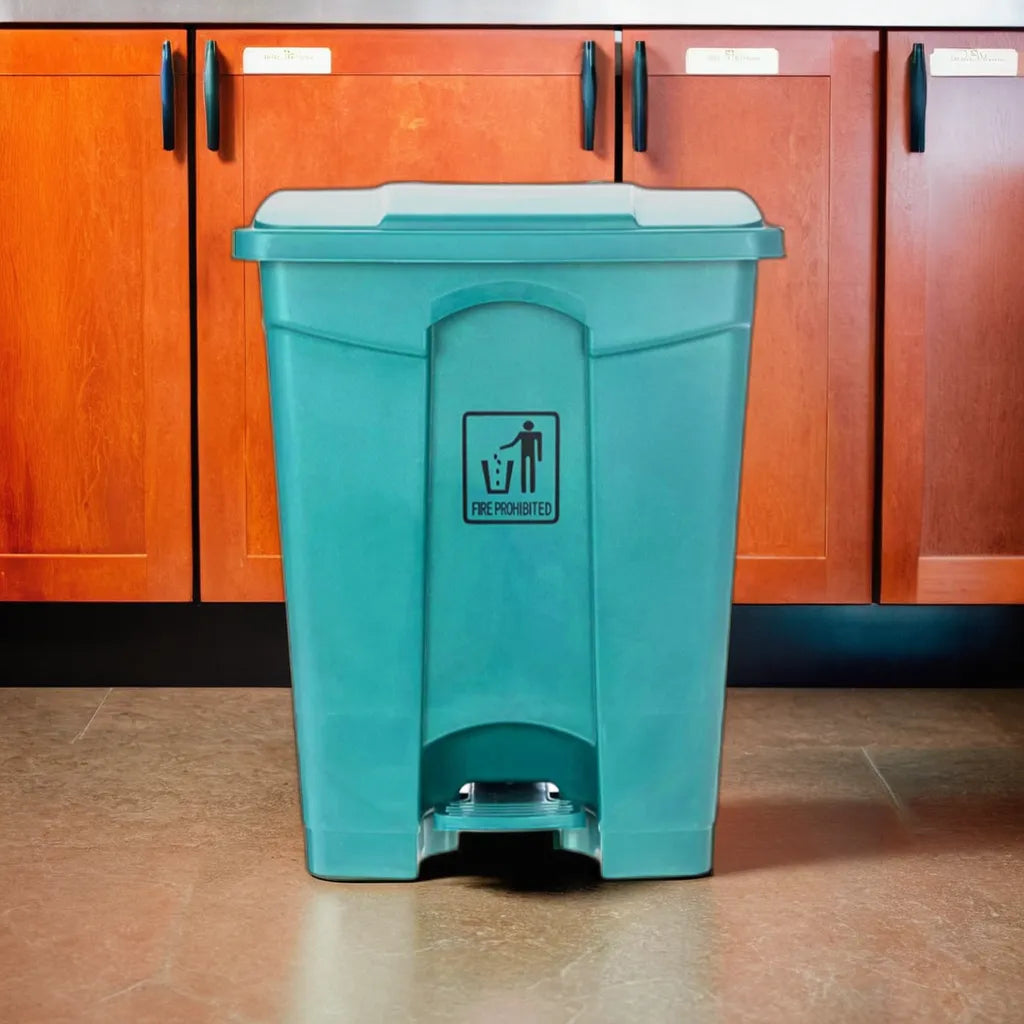 Introducing the Garbage Can With Pedal 87LT, available in vibrant colors such as Red, Yellow, Blue, Green, and Grey. With a generous 87-liter capacity, this bin combines compactness with versatility, ideal for various settings. Designed for use with garbage bags, it stays dry and is easy to clean. Made from sturdy polypropylene, it's resistant to rust and dents, ensuring long-lasting durability. The pedal mechanism offers convenient hands-free opening.