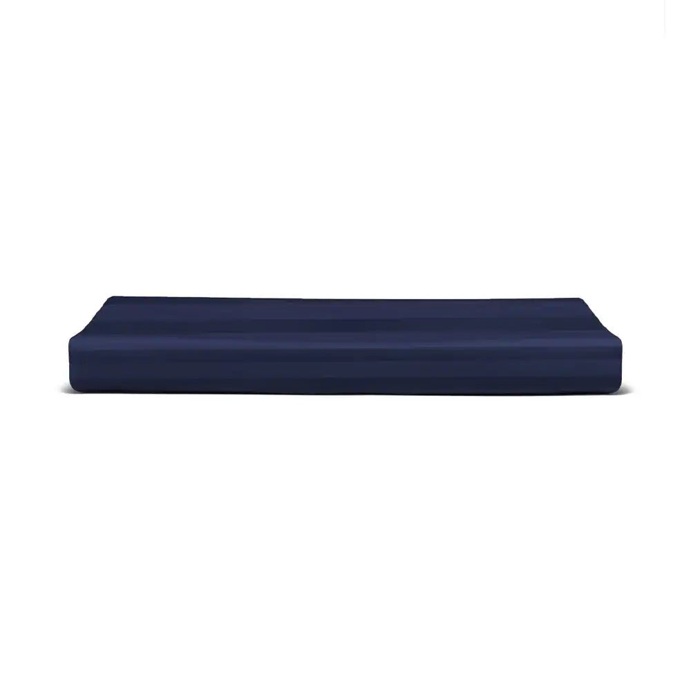 Designed specifically for the hospitality industry, this king-size flat sheet in navy blue offers unrivaled comfort and elegance. Its luxurious 250 thread count 100% cotton sateen fabric exudes a sateen sheen, promising a lavish sleeping experience. The material is engineered to be wrinkle-free, ensuring immaculate beds with minimal effort.