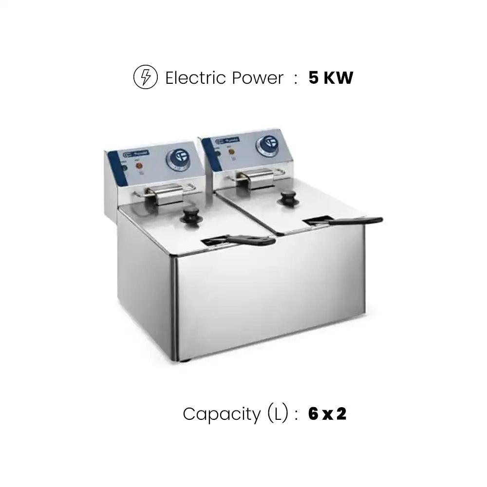 THS Stainless Steel Electric Deep Fat Fryer Double Tank Fryer 6l + 6l, L 54 X W 41 X H 28.5 cm, Dual Adjustable Temperature Control - HorecaStore
