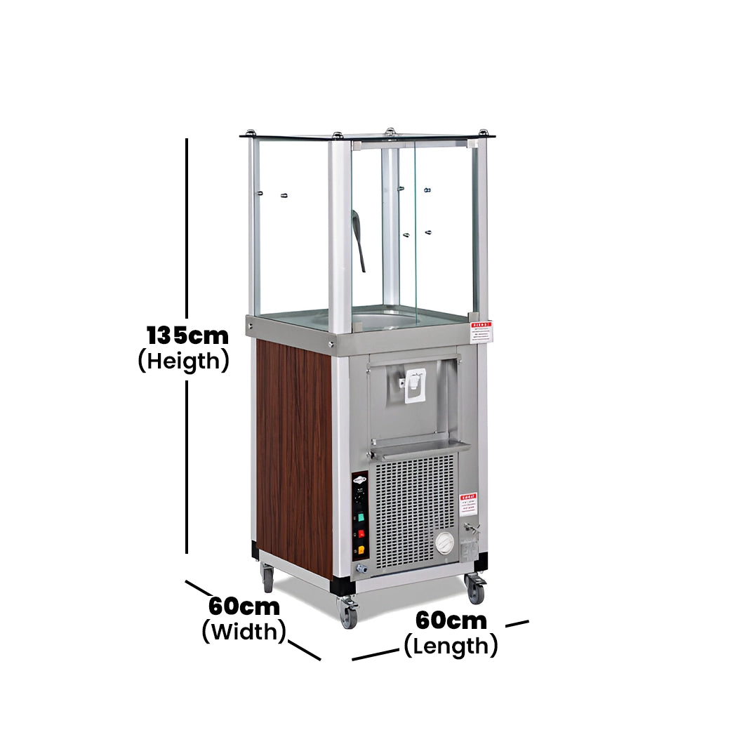• Offers flexible drink options, including foamy or foamless yogurt drinks, and features interior lighting for attractive display.