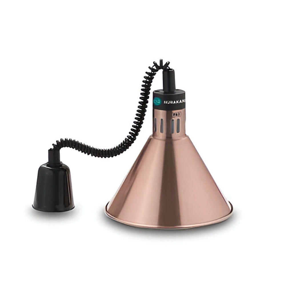 The Hurakan HKN-DL800 Infrared Lamp, made of painted metal in a sleek bronze finish, complements any hotel, restaurant, or catering arrangement. It offers varied lighting choices and is easily adjusted from 600 mm to 1500 mm in height. The easy insertion of a light bulb guarantees that it is ready for instant usage.