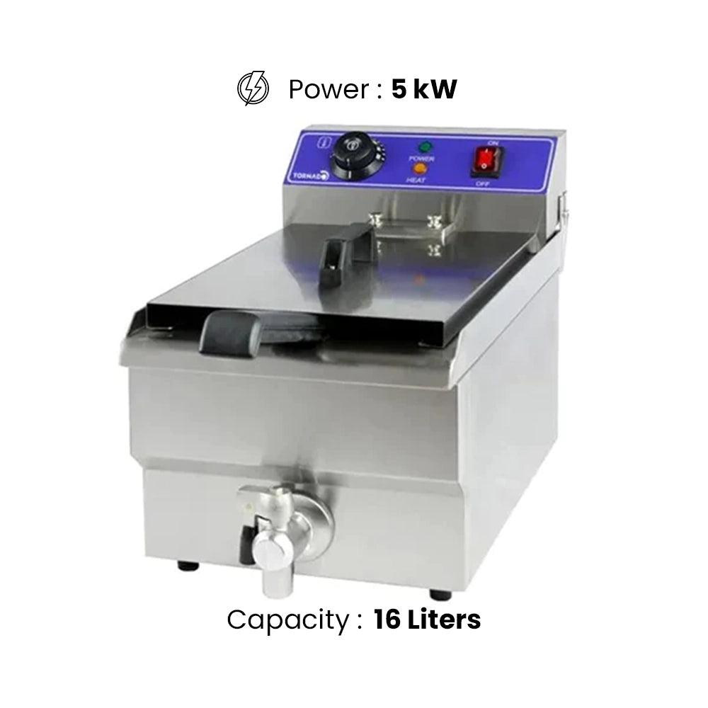 • Large Capacity Holds 16 liters oil for efficient frying batches.