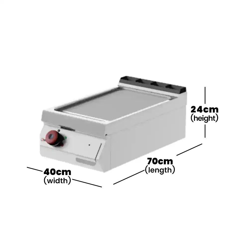 The Desco FTG72TA1 Stainless Steel Electric Grill, a culinary powerhouse designed for hotels and restaurants. This top-version grill features a smooth plate, 5.4 kW power, and thick/high thermal conductivity for exceptional cooking. Compact at 40 x 70 x 24 cm, it maximizes space efficiency. Elevate your kitchen with this versatile, precision-engineered grill, seamlessly integrating innovation and style to meet the high standards of professional culinary environments.
