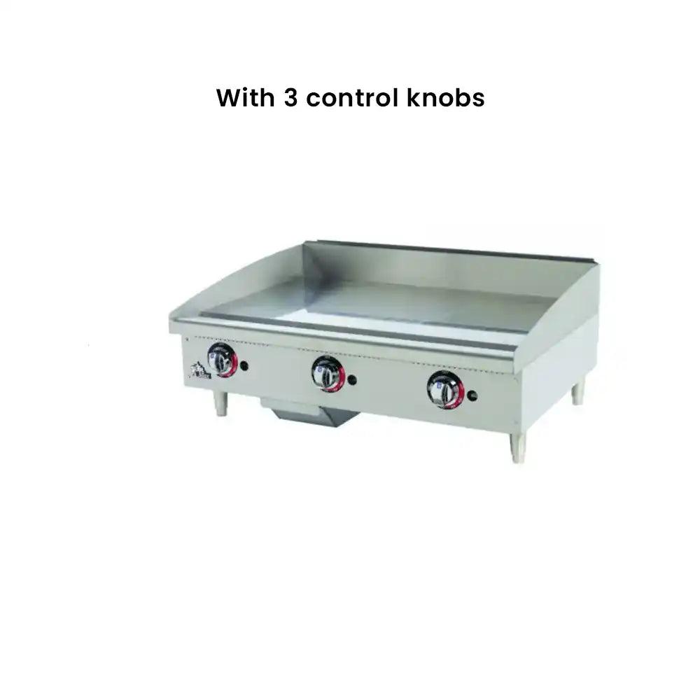 The Star Manufacturing USA 624MF Gas Countertop Griddle – a culinary powerhouse designed for cafes, hotels, and restaurants. Crafted with precision, this stainless steel marvel boasts a modulating thermostat and 2-knob control for unparalleled cooking control. Elevate your kitchen with efficiency and elegance, offering unmatched versatility to impress guests and meet the demands of professional culinary environments.