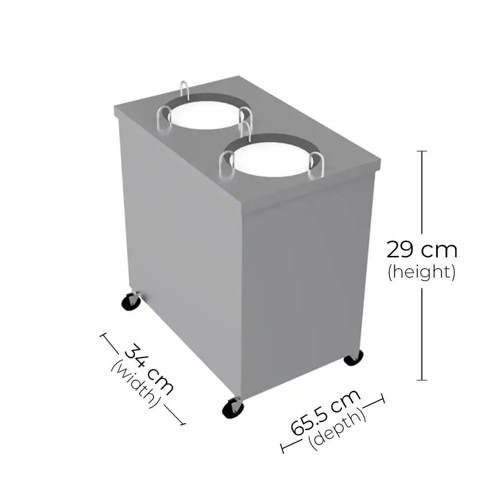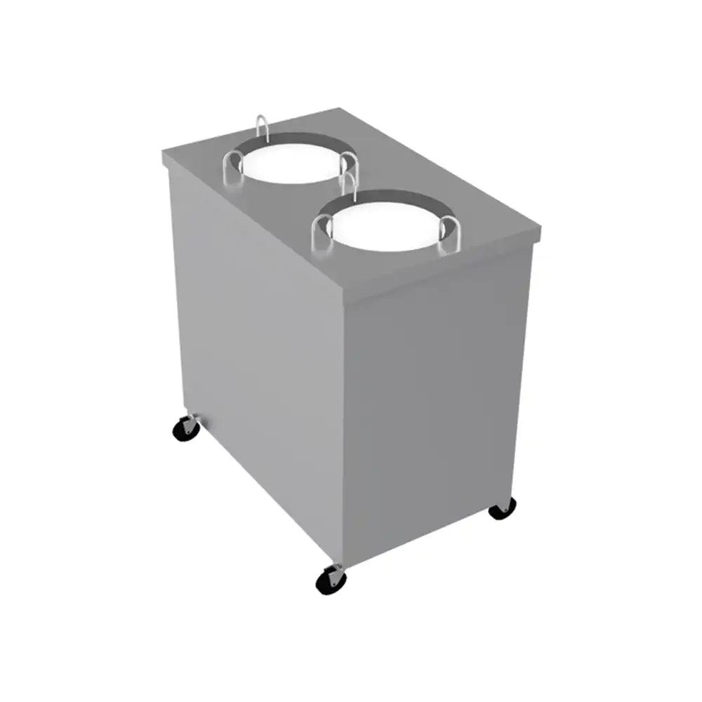 Empero's EMP.TO.2432-I-2 Plate Dispenser, made from durable stainless steel, efficiently warms and dispenses plates for cafes, hotels, and restaurants. With an increased 48/64 plate capacity and reliable heating, this dispenser ensures consistent dish warmth in commercial culinary environments without sacrificing kitchen space.