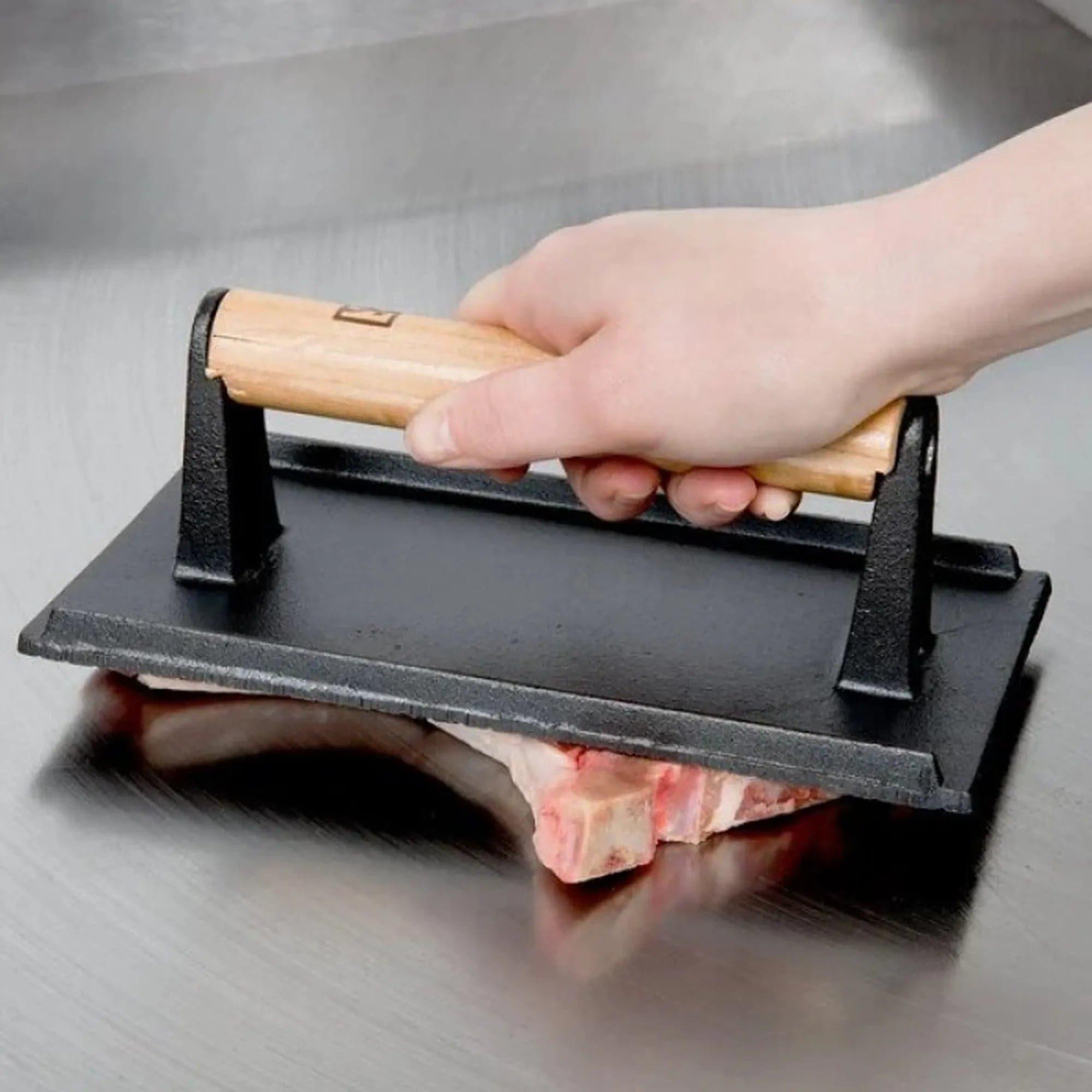 American Metalcraft ISW2 Cast Iron with wooden Handle Grill Press 20.3 x 10.2 cm   HorecaStore