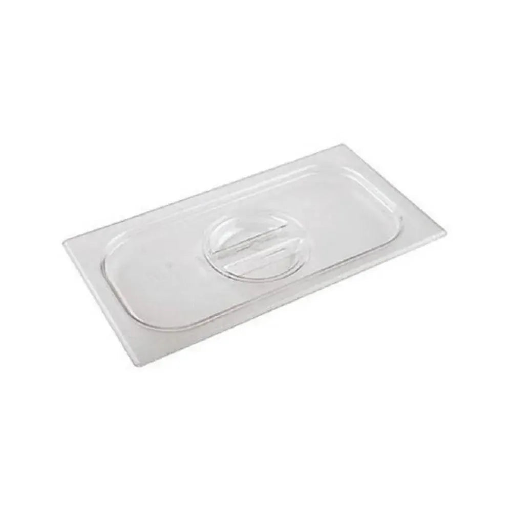 Elevate your kitchen with the Paderno Polycarbonate GN Pan Lid 2/1 - Clear. Crafted from durable polycarbonate, it offers a precise fit for 2/1 GN pans, ensuring food safety and easy monitoring. Its transparent design, ergonomic handle, and easy cleaning make it versatile for storage, transport, and serving.