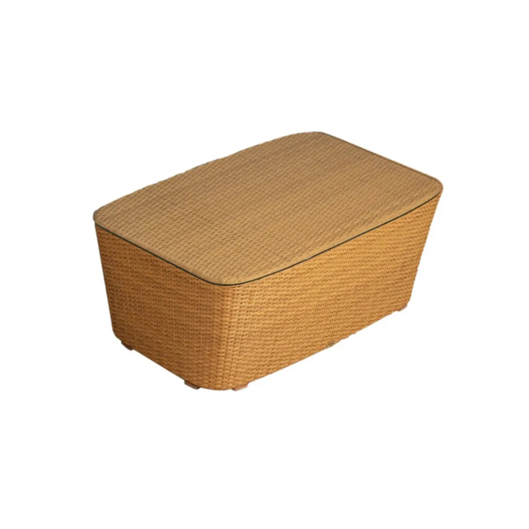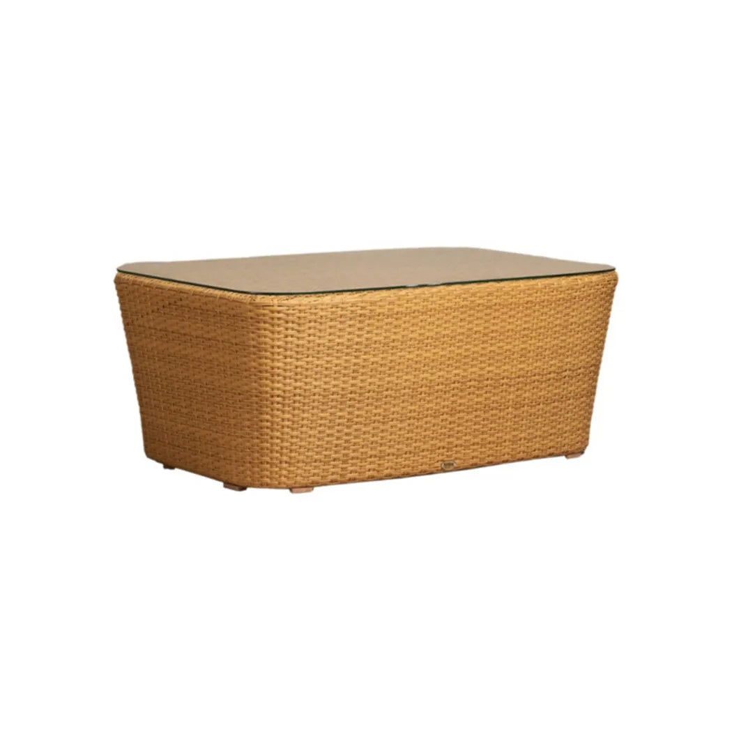 • Powder coated aluminum frame covered with synthetic Rattan with tempered glass on top