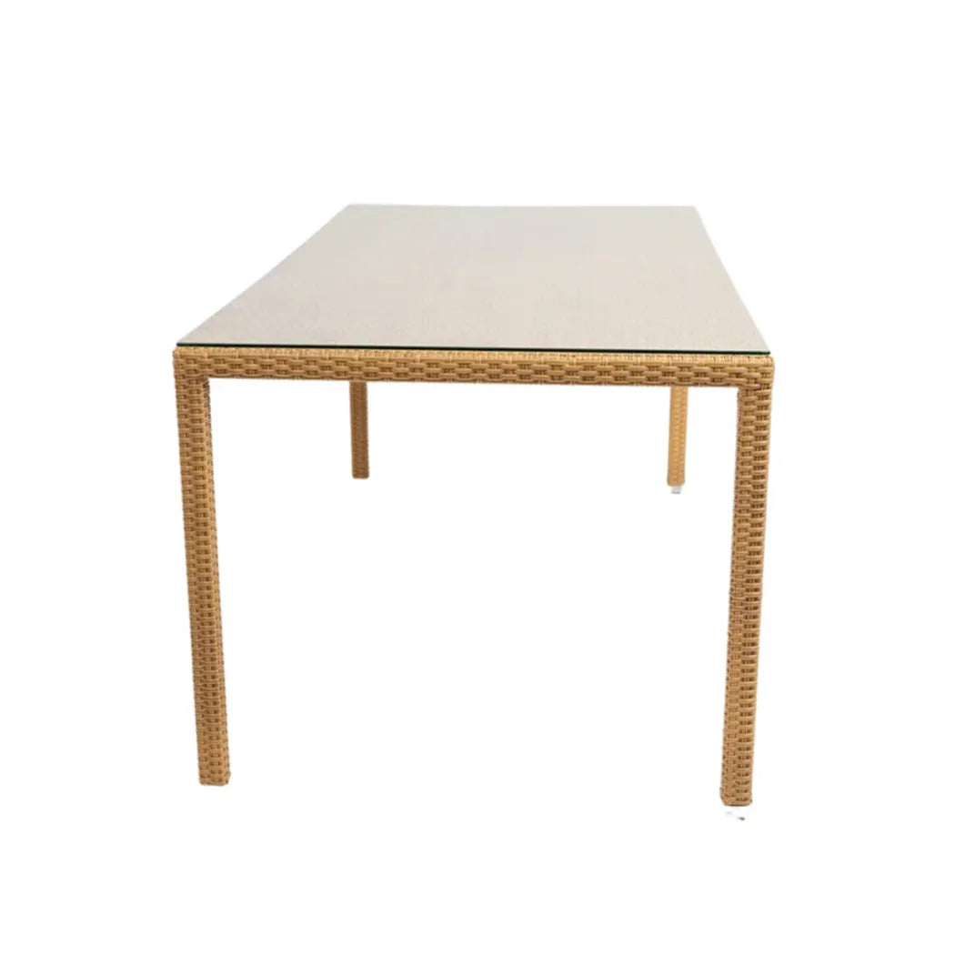 • Powder coated aluminum frame covered in Synthetic Rattan with Tempered Glass on top