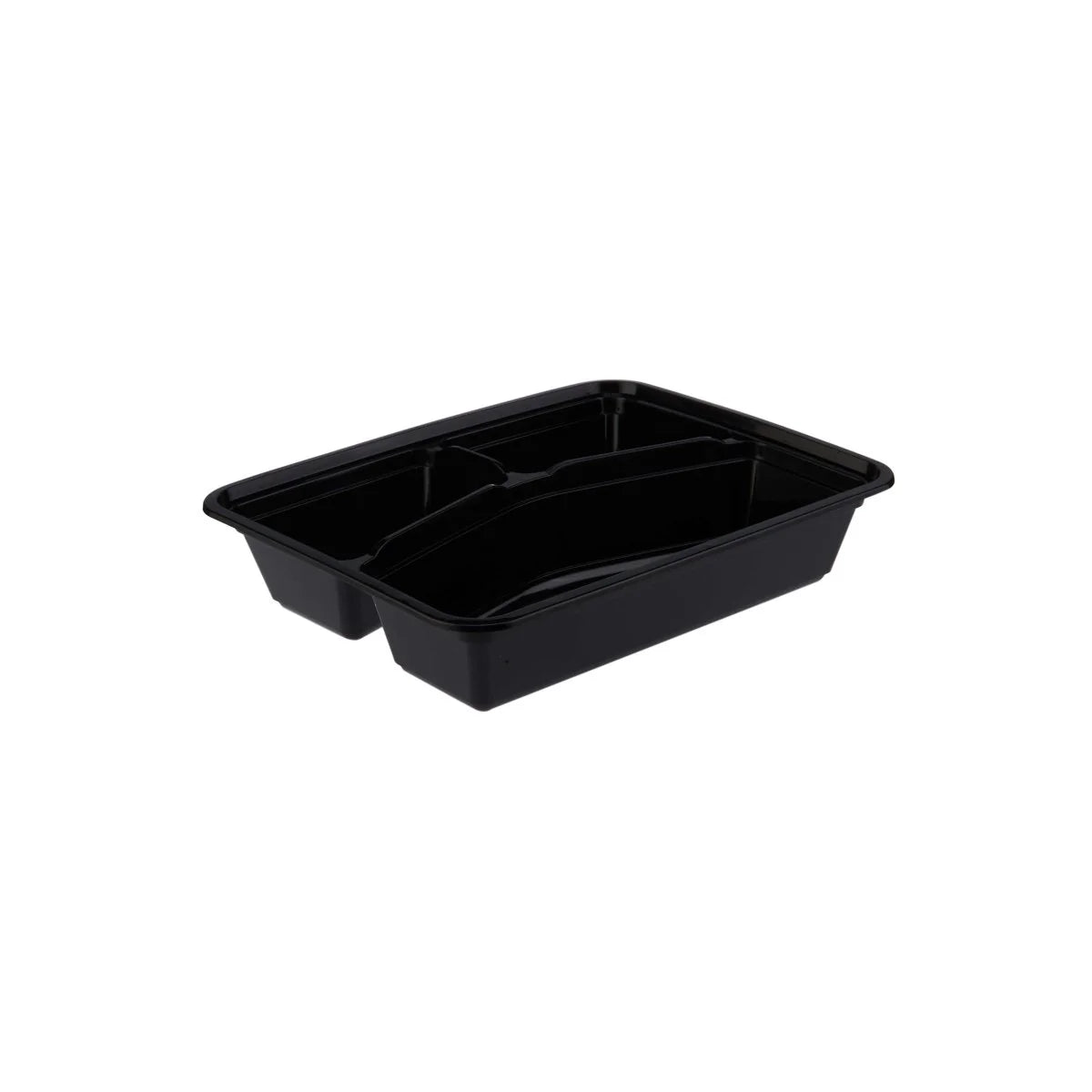 Hotpack Black Base Rectangular 3 Compartment Container Without Lid, 22.9 x 17.9 x 5 cm, 300 PCs