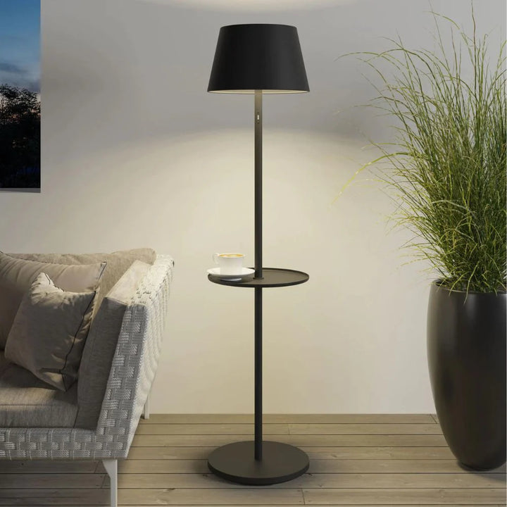 The GARCON outdoor luminaire made of high-quality aluminium is not only practical with its movable table, but also always creates the perfect mood! You decide on the desired light intensity and 9 light colours via the touch sensors. A special feature: The battery lamp can be assembled in 3 different heights, so that the GARCON fits every situation. Thanks to the IP65 protection class, the floor lamp can be used both indoors and outdoors. Charging station included.