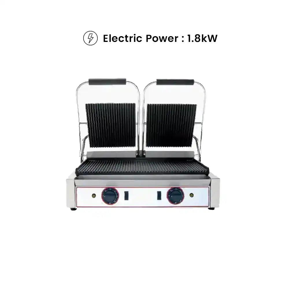 Beckers R2 Electric Double Grill Top And Bottom Ribbed Cast Iron Plates, Power 1.8 kW