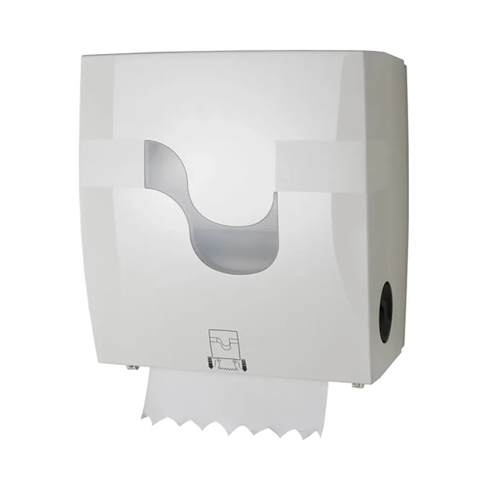 Introducing THS Formatic with an innovative mechanical dispensing system for improved hygiene and convenience in hospitality settings. Its hygienic single-sheet manual dispenser ensures you touch only the paper you use. The new mechanism offers easy dispensing with minimal resistance and reduced noise. Featuring a reset knob for ergonomic comfort, opalescent window for refill indication, and lockable design for security. Elevate your restroom experience with Formatic's advanced features.