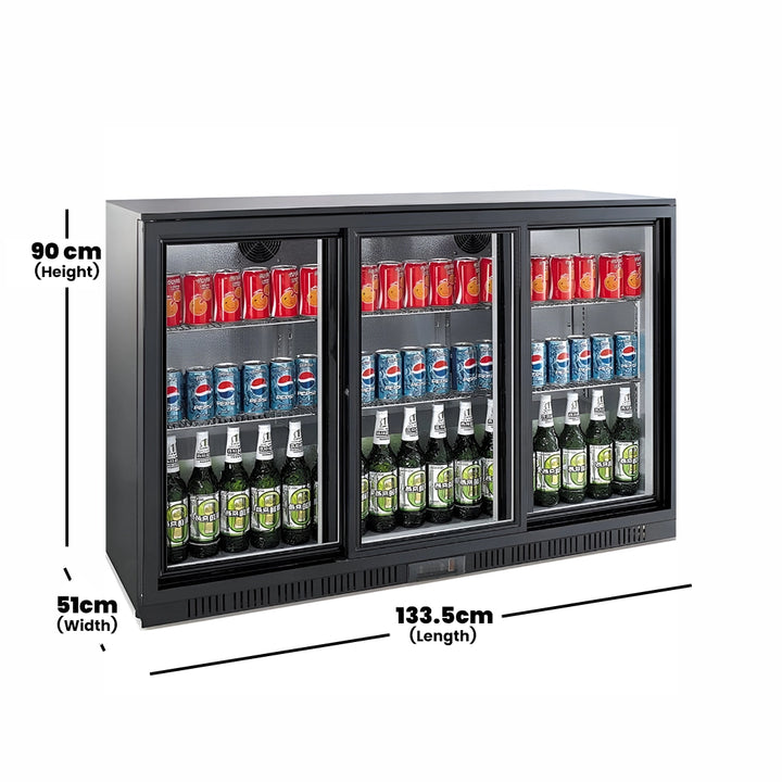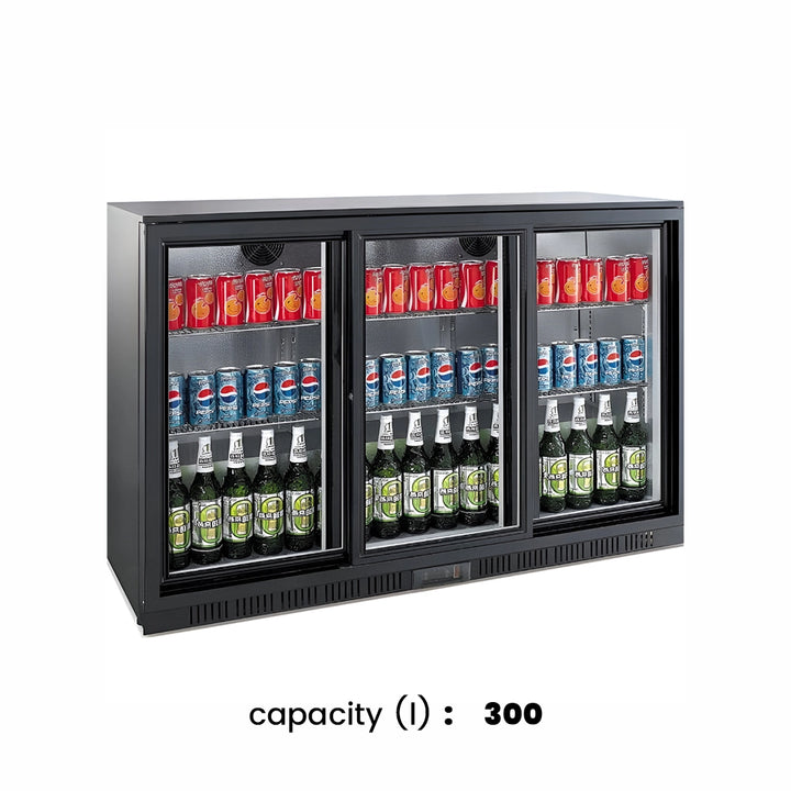THS Three Sliding Door Bar Cooler Black, 300 L, 133.5 x 51 x 90 cm