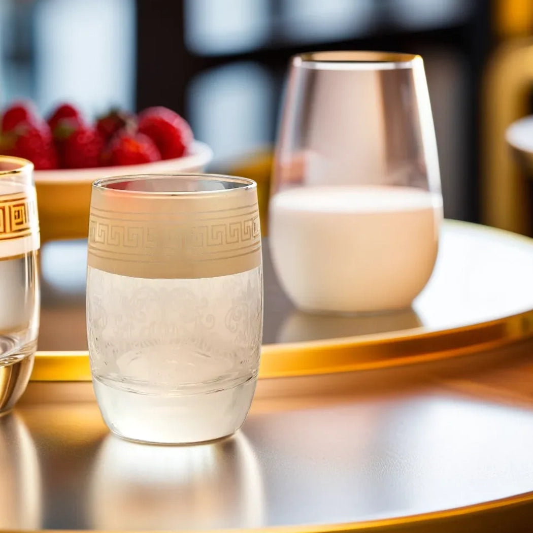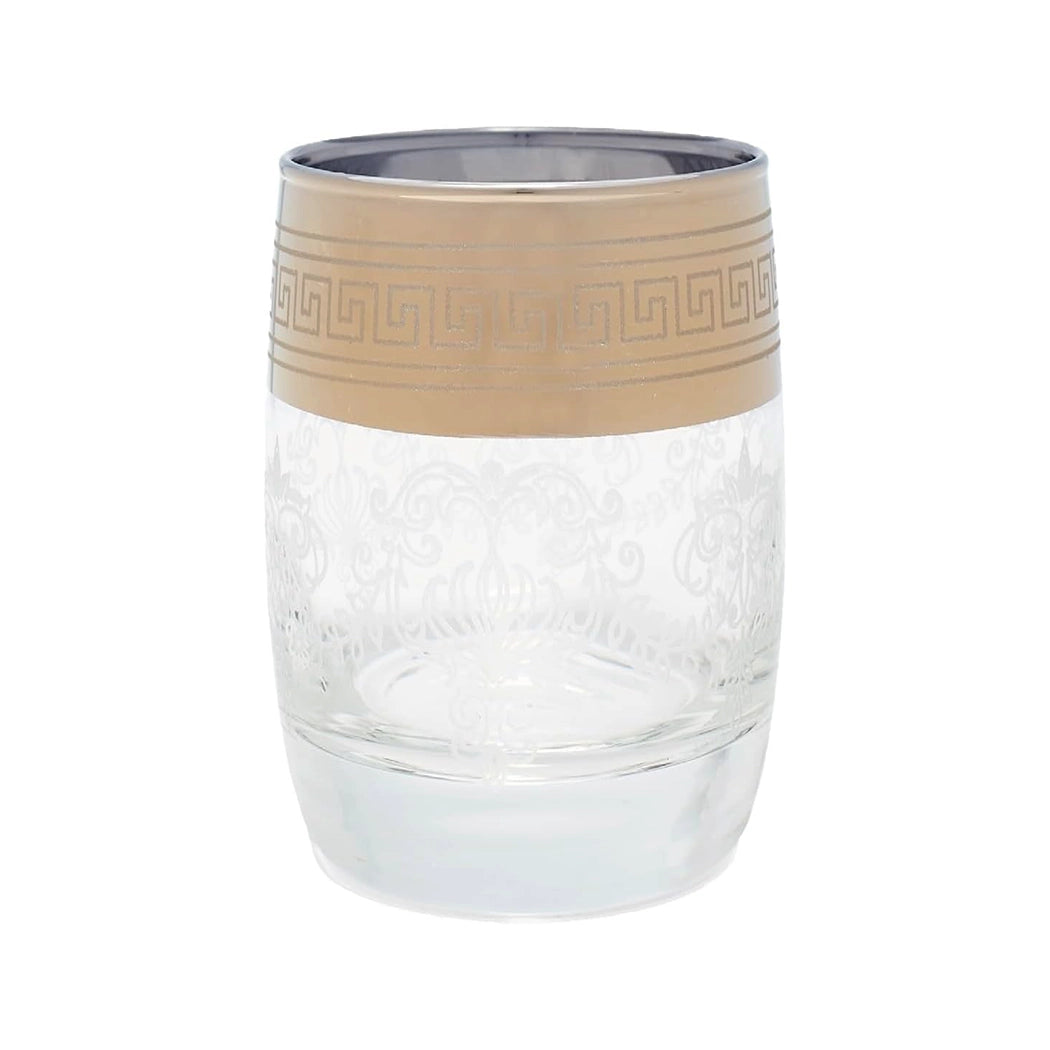 The GlaSStar Baroque set comprises 6 decorated glasses with a 310ml capacity, crafted from transparent glass in Europe. Ideal for hotels and restaurants, it enhances beverage presentation with ornate Baroque designs. Perfect for serving various drinks, it adds sophistication and style to tabletops, elevating dining experiences with its decorative appeal.