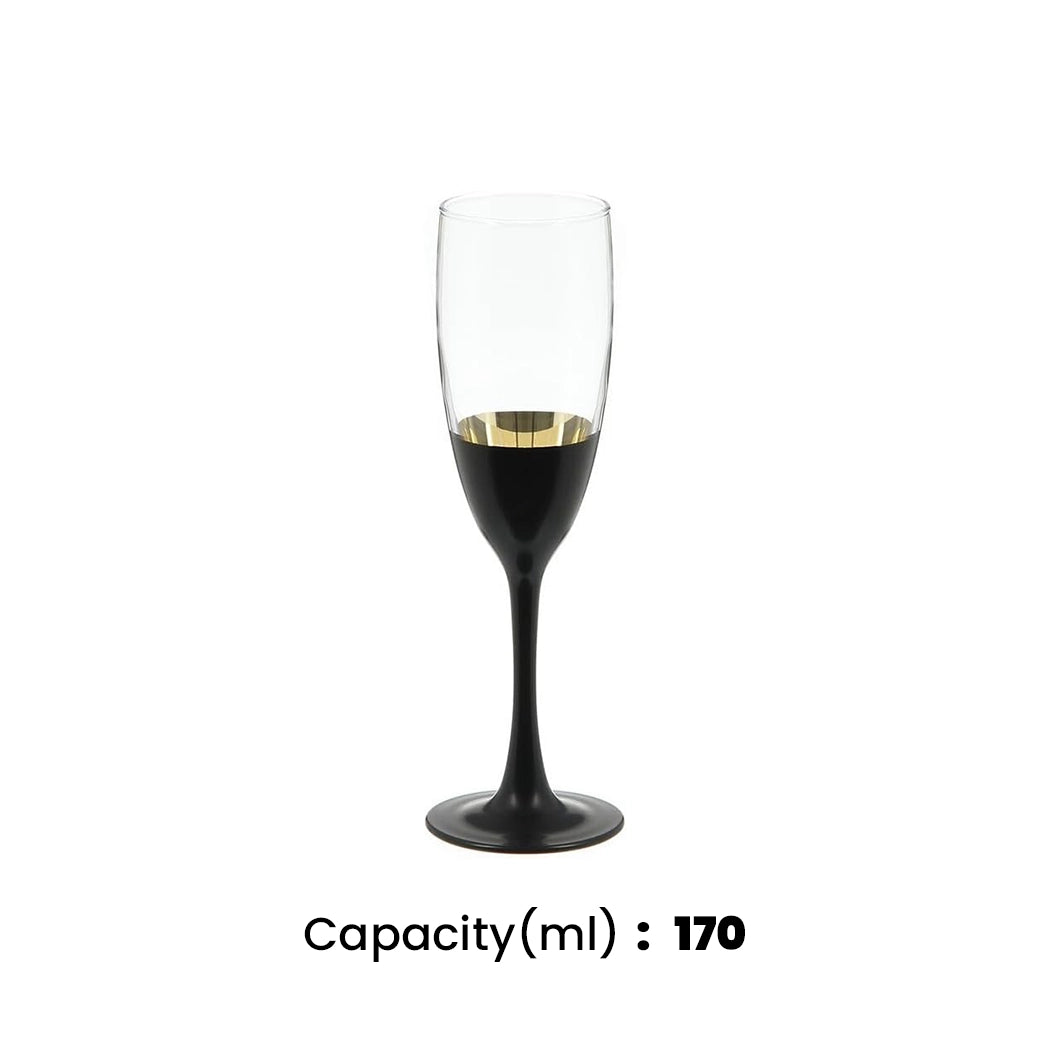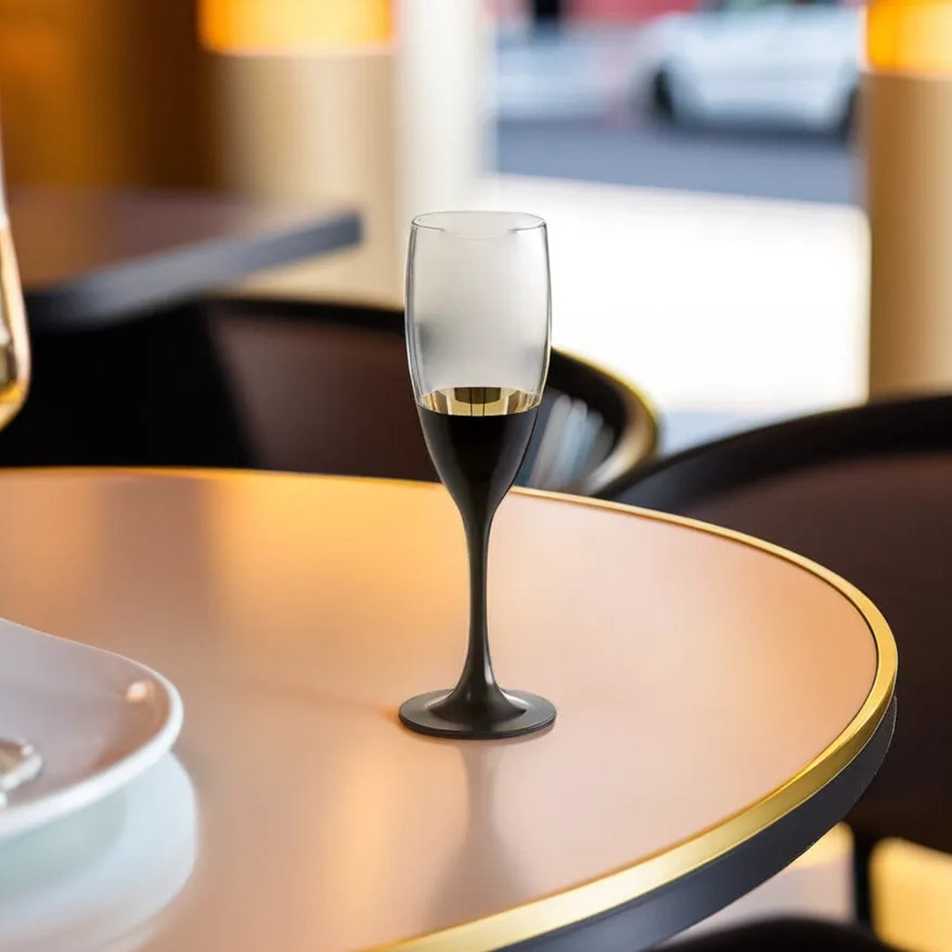 The GlaSStar Blackstyle glassware set features 6 glasses with a 170ml capacity, distinguished by a sleek black gold design. Made in Europe from glass, these glasses elevate table settings in hotels and restaurants, perfect for serving beverages with a sophisticated aesthetic that appeals to upscale dining experiences.