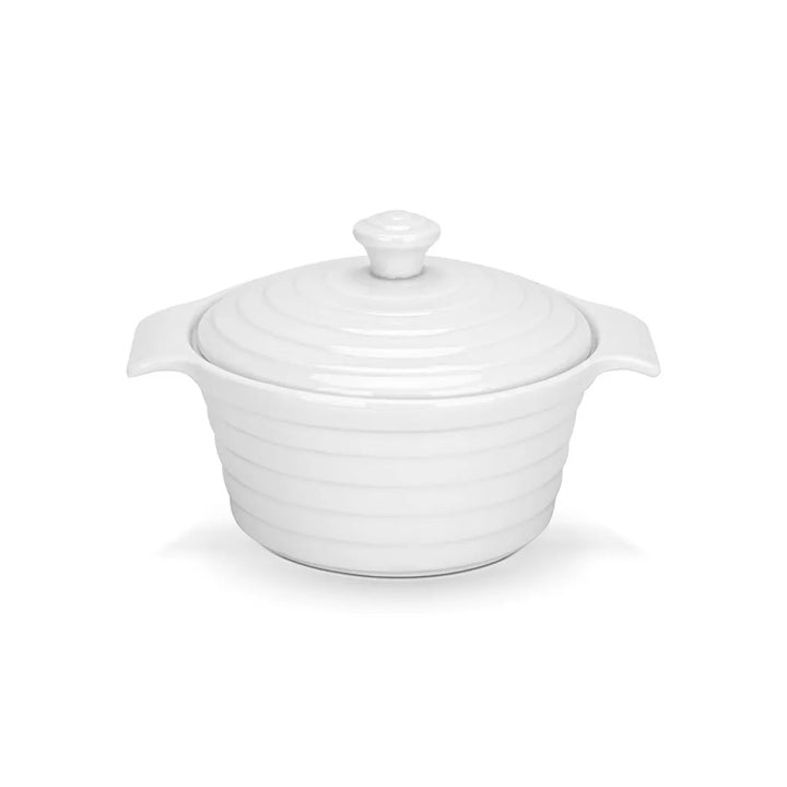 Porcelain Round Mini Pot Baking Dish with Lid, 340 ml Capacity and 13 x 6 cm
