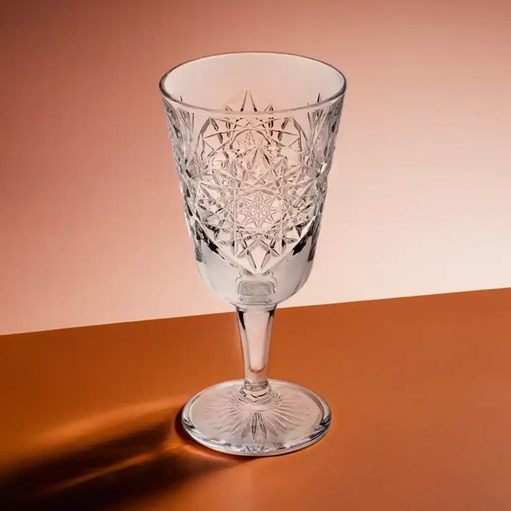 Designed for the refined tastes of hotels, restaurants, and catering businesses, the Libbey Hobstar Wine Glass presents an integral addition to your service. Its unparalleled craftsmanship manifests in the distinguished hobstar pattern, offering a vintage aura fused with modern elegance. This highly durable glassware piece not only accentuates the vibrancy and aroma of the wine but also promises an enhancement to your table's aesthetic appeal.