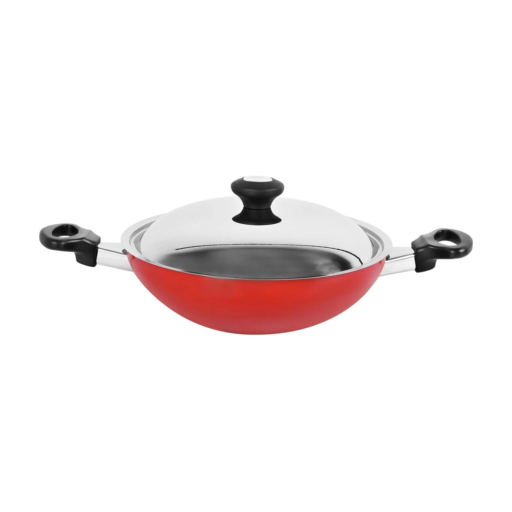 Prestige Metal 0.4L Flat Bottom Kadai, Red