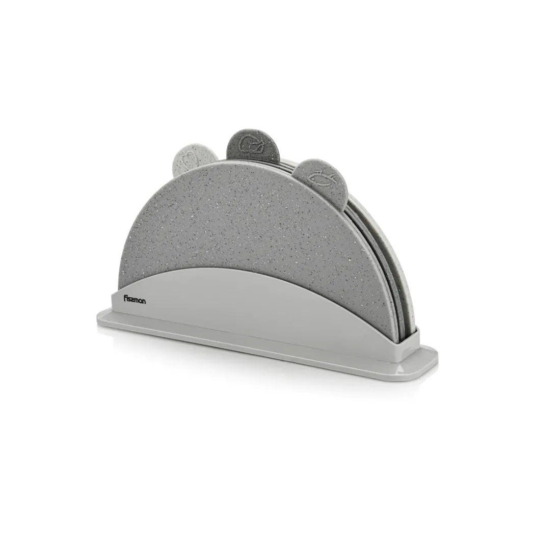 The Fissman 3-Piece Foldable Cutting Board Set in grey, black, and white, each board measuring 28x28cm, offers efficient food preparation with designated boards for fish, meat, and vegetables. Made from eco-friendly plastic, these boards resist odors and abrasion while preserving knife sharpness. They feature index-style tabs for easy identification and a functional stand for convenient storage. Dishwasher safe and durable, these cutting boards are perfect for professional kitchens and the hospitality industry, reflecting Fissman's commitment to quality and reliability.