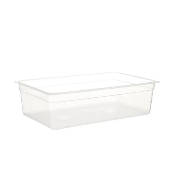 The versatile Lacor Spain 66115H Polypropylene Food Pan 1/1 - 15 cm Deep in White, designed for optimal GN pan integration. Crafted from durable polypropylene, it ensures long-lasting performance while maintaining food quality. Its sleek white finish adds elegance, complementing its practical handles for easy maneuvering. Elevate your culinary experience with this hygienic, reliable, and stylish GN pan.