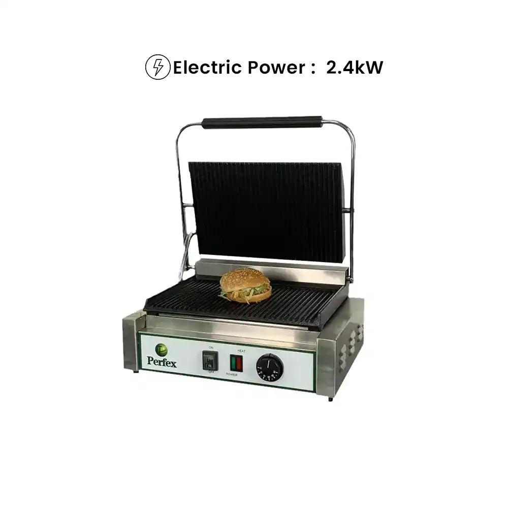 • 2.4 kW mechanism prepares sandwiches, paninis, and grills meats for diverse culinary experiences.