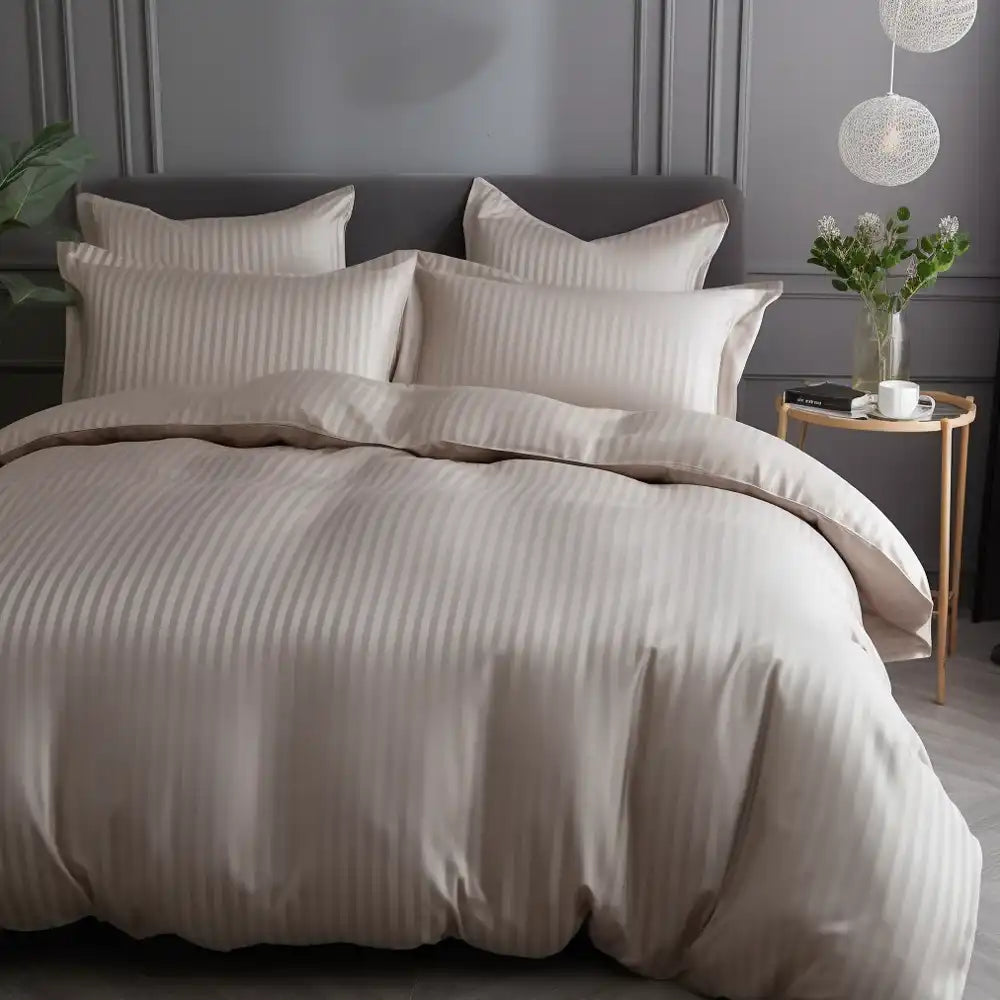 Unveiling the essence of luxury in the hotel and catering industry, our Zen Stripes double flat sheet in Pearl is impeccably crafted from 100% sateen cotton. With 250 thread count, it guarantees a smooth, wrinkle-free experience, ensuring ease of maintenance for busy establishments. Its pearl hue adds a touch of elegance, effortlessly blending with various decor themes.