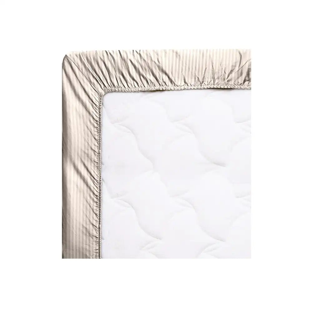 THS Zen Stripes Double Fitted Cotton Bed Sheet Beige