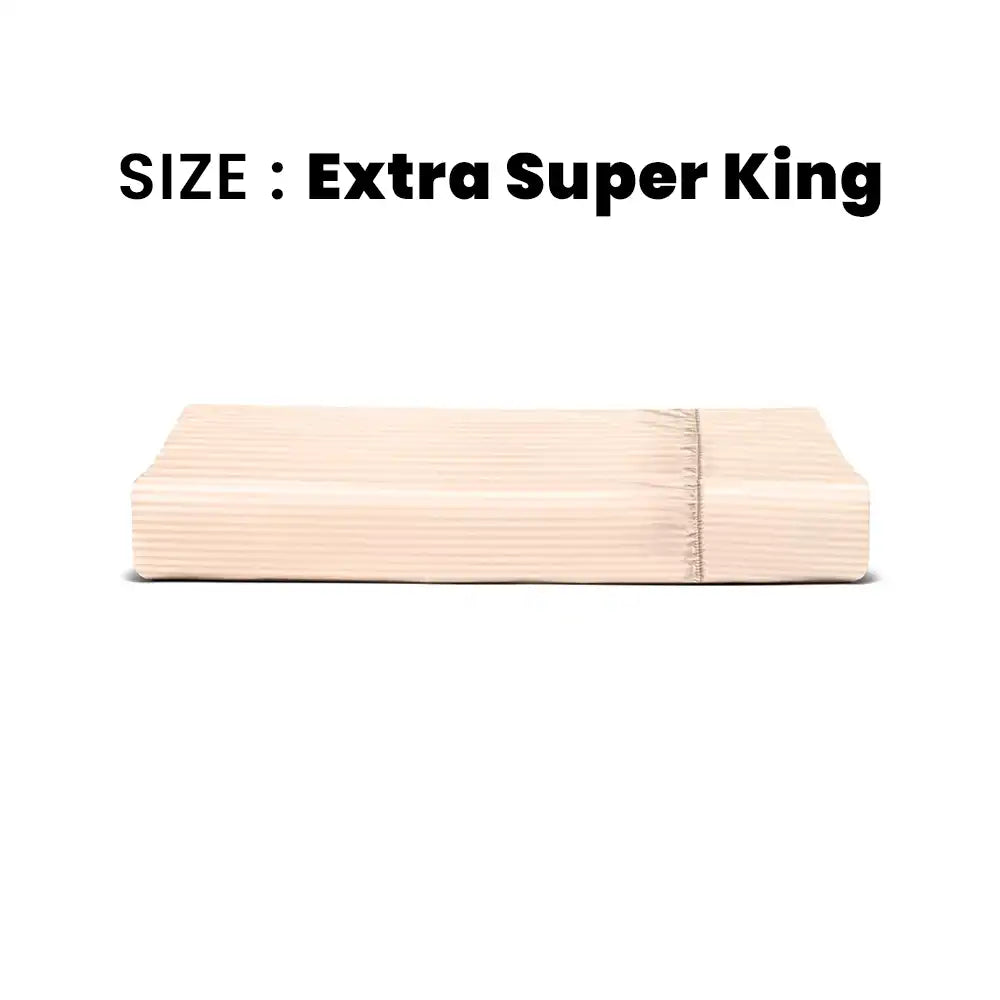 THS Zen Stripes Extra Super King Fitted Cotton Bed Sheet Pearl