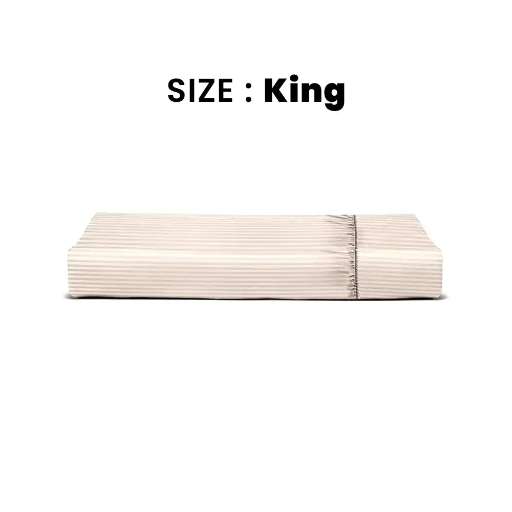 THS Zen Stripes King Fitted Cotton Bed Sheet Beige