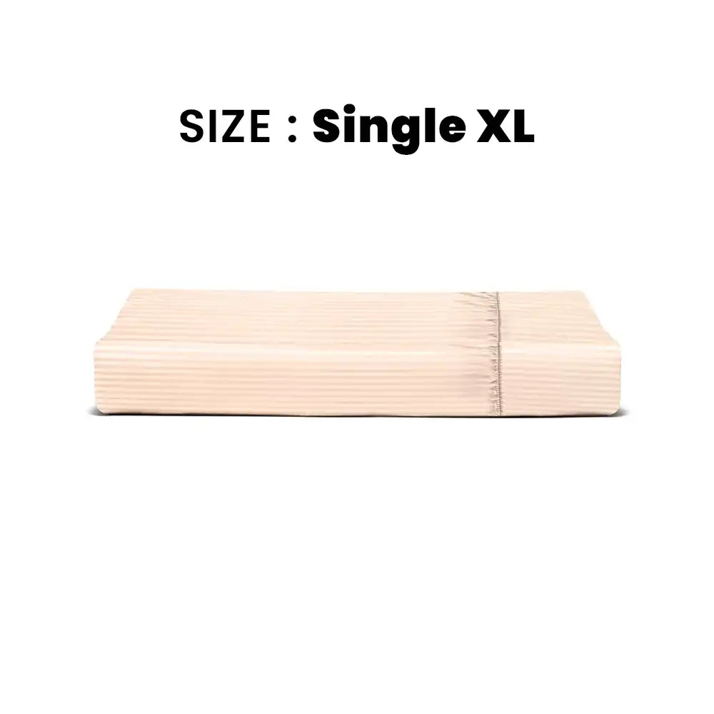 THS Zen Stripes Single XL Fitted Cotton Bed Sheet Pearl