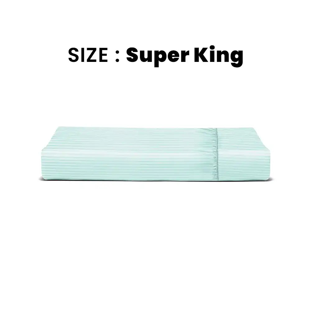 THS Zen Stripes Super King Fitted Cotton Bed Sheet Baby Blue