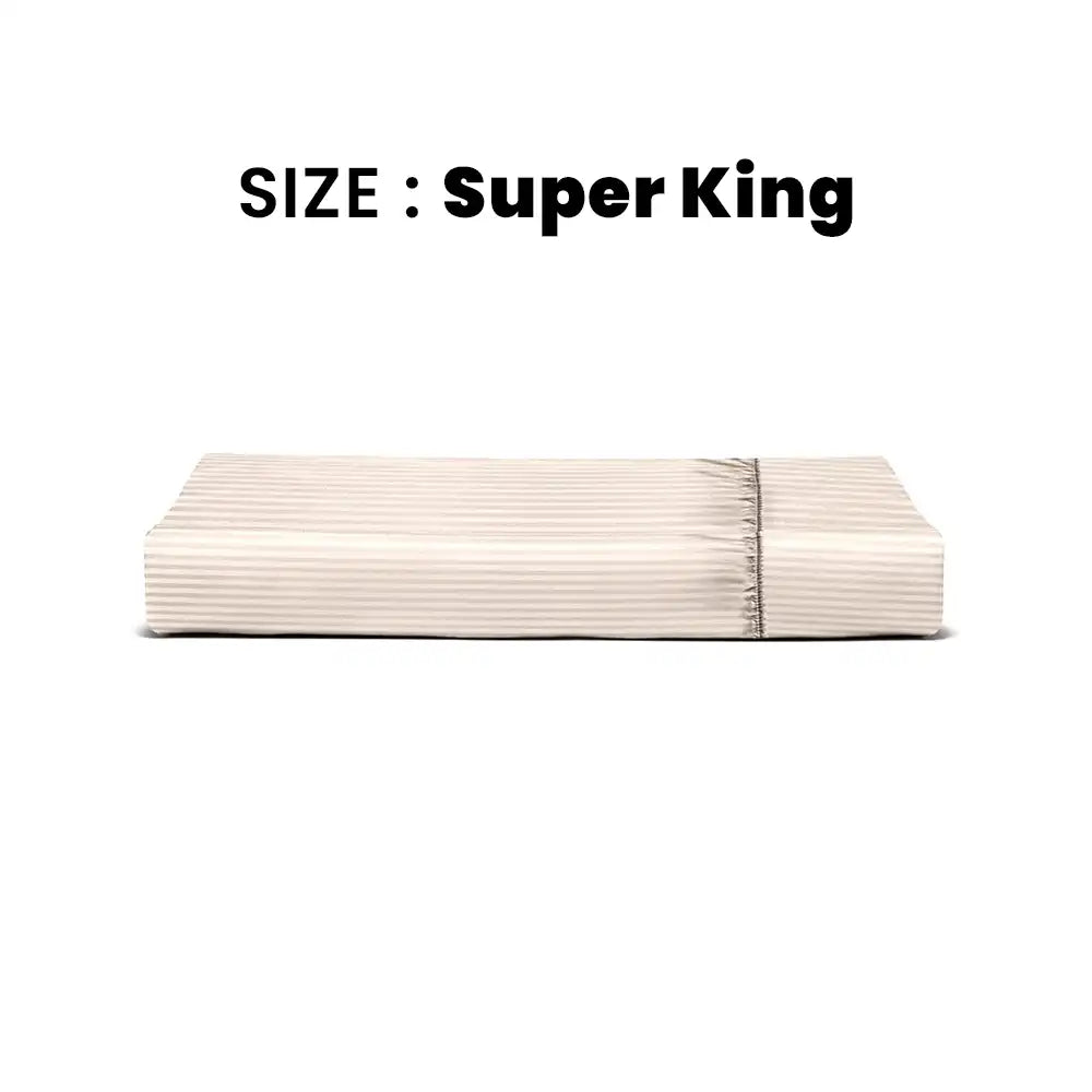 THS Zen Stripes Super King Fitted Cotton Bed Sheet Beige
