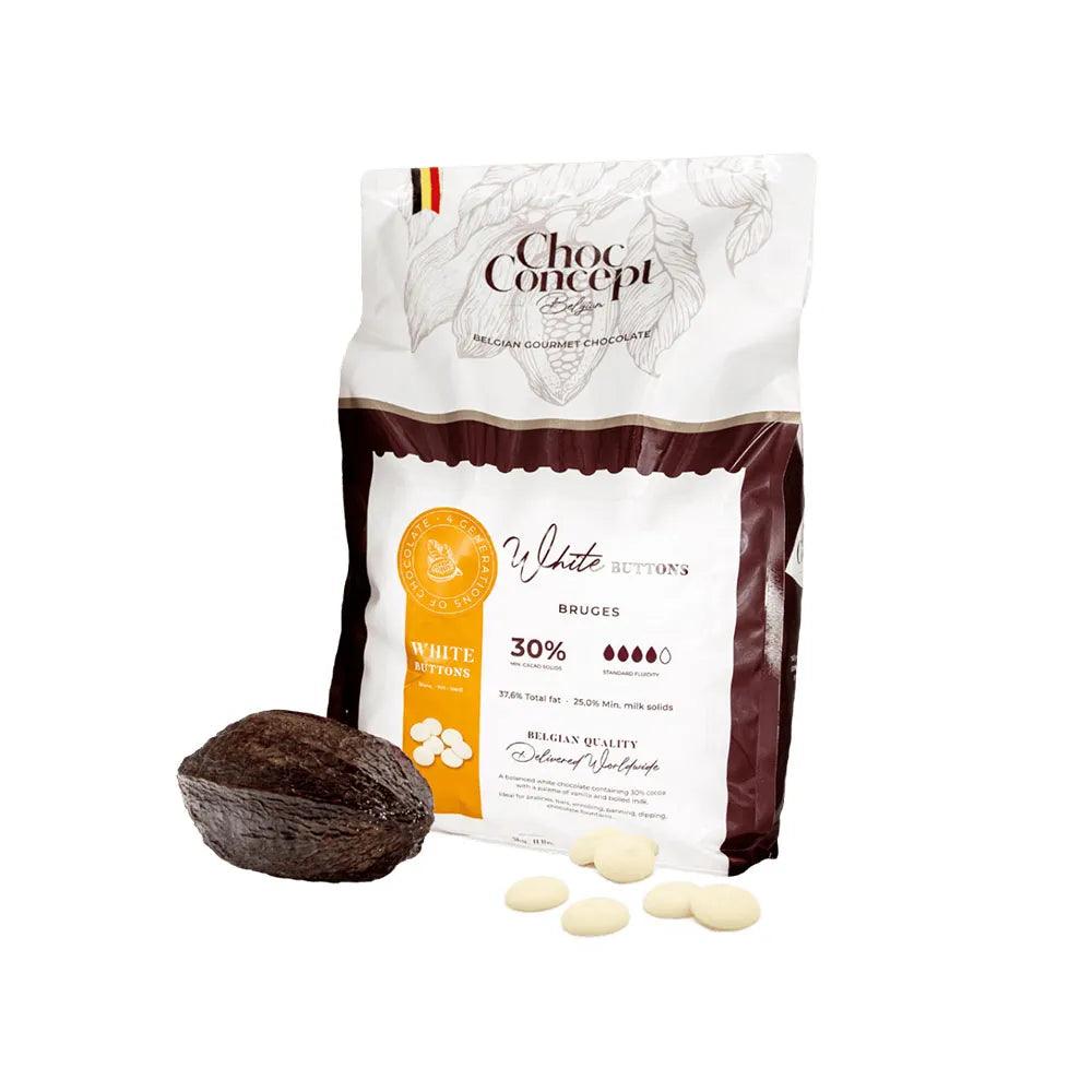 ChocConcept Buttons White Bruges 30% 1 x 10 Kgs