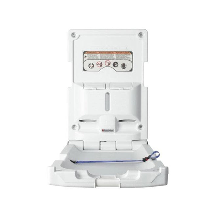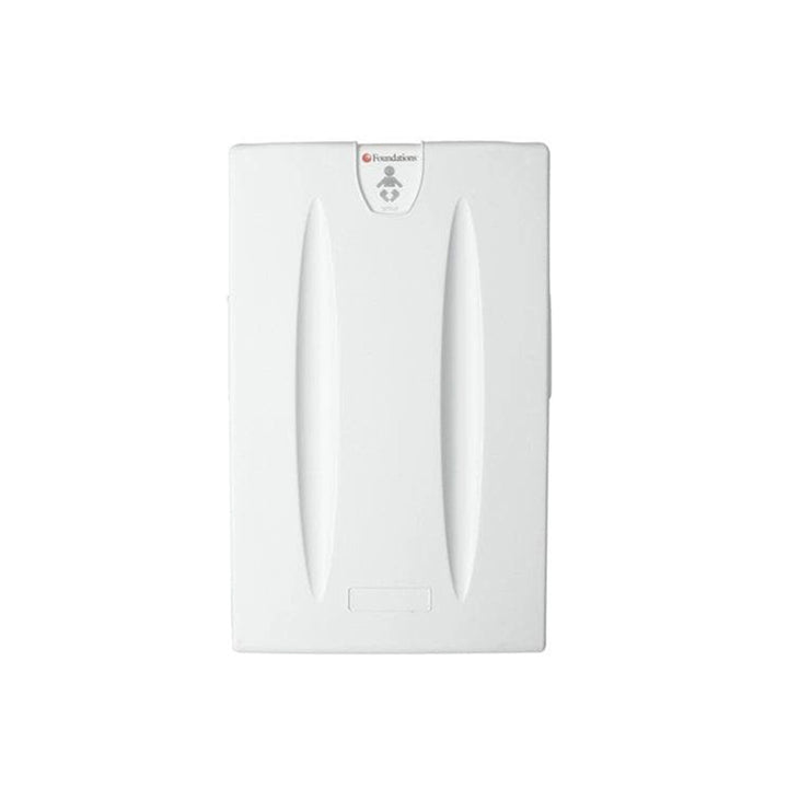 The Foundations Classic Vertical Surface Mount Baby Changing Station with Becker Plate (L 49.53 x W 10.16 x H 77.47 cm). This sleek and durable diaper changing table optimizes space, ensuring hygiene, safety, and convenience of your guests. With ample storage, user-friendly features, and easy maintenance, it's a must-have for family-friendly establishments. Elevate your space with this modern, functional, and secure baby changing solution, a sigh of relief for your previlidged guests!