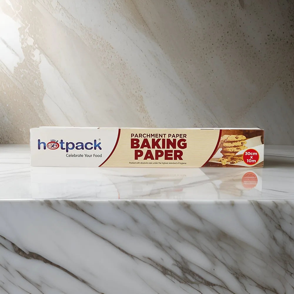 Ensure easy baking and cleanup with Hotpack's Baking Paper Parchment Paper Roll. Ideal for lining baking trays, pans, and Moulds, this parchment paper prevents sticking and promotes even baking. Made from high-quality paper, it is greaseproof and non-stick, making it perfect for baking cookies, cakes, and other treats. Suitable for home and professional use, this parchment paper roll is a versatile addition to your kitchen.