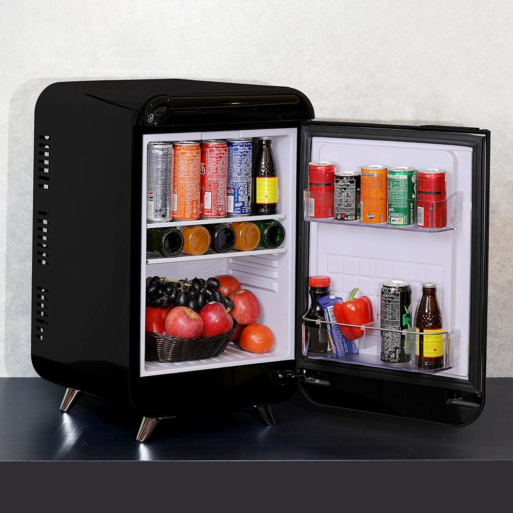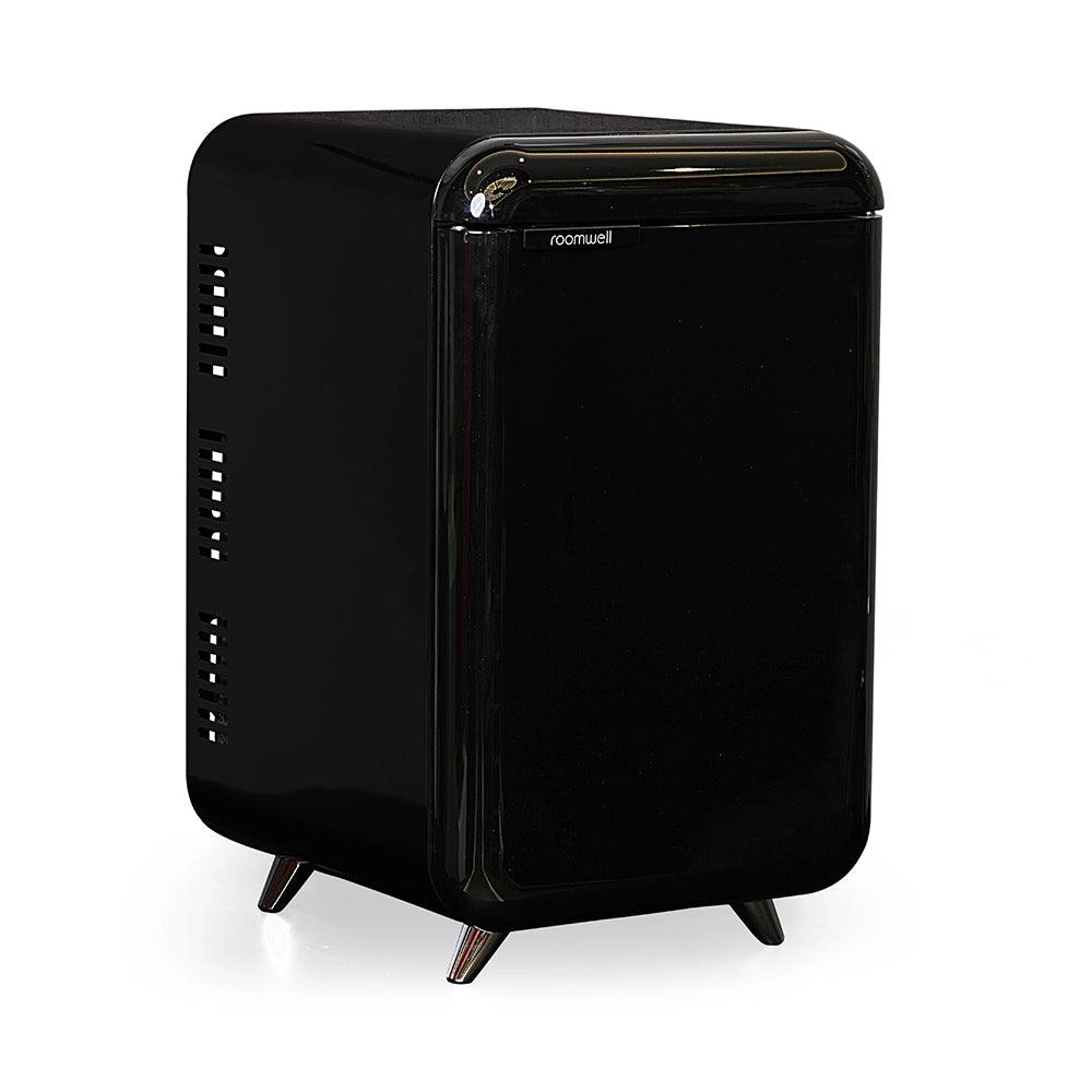 The Roomwell UK Retro Compressor Mini Bar Fridge, a stylish and energy-efficient mini fridge. With a 38-liter capacity, fast cooling, and quiet operation, this black retro-inspired mini bar is perfect for any space. Save energy while enjoying convenient storage for beverages and snacks. Elevate your décor and refreshment options today.