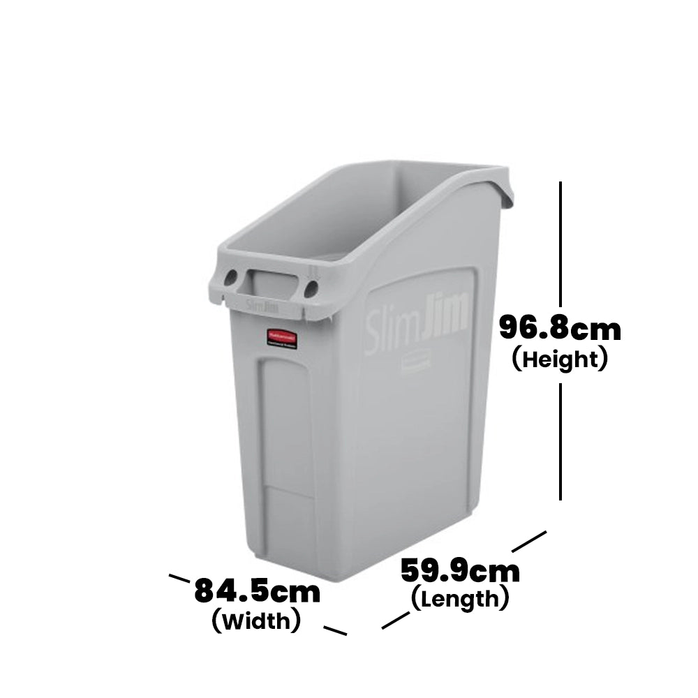 Expertly designed for durability, this Rubbermaid 49L Slim Jim Under Counter Bin is a quintessential asset for hotels, restaurants, and catering services. Crafted from high-grade polyethylene, its dimensions of 28.37cm in width, 66.27cm in height, and 56.46cm in depth ensure a perfect fit under counters. Features like integrated venting channels and bag cinches enhance usability by preventing vacuum formation and facilitating easy liner changes. Added to that, its moulded rim and base handles, together with a reinforced rim, offer both ease of handling and longevity.