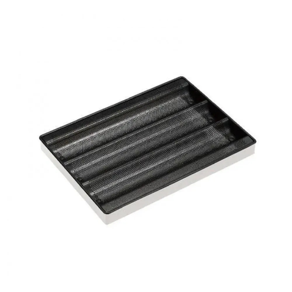 Sanneng SN1597 Aluminium Alloy 3 Rows Baguette Tray non Stick, L 36.5 x W 26.5 cm