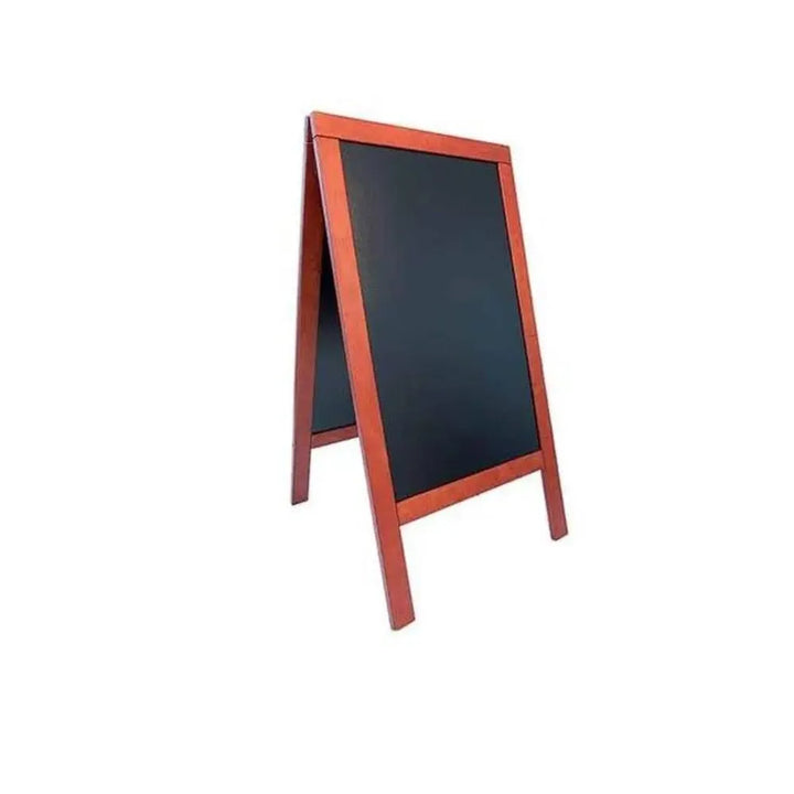 Elevate your business with the Securit® Wooden A Frame Chalkboard Sign, an extra-large, double-sided, free-standing easel designed to be a sturdy sidewalk sign for maximum impact. Crafted in rich mahogany, this outdoor blackboard pavement sign is perfect for restaurants, offering a stylish menu display. Make a bold statement and unleash your marketing creativity with this must-have marketing tool.