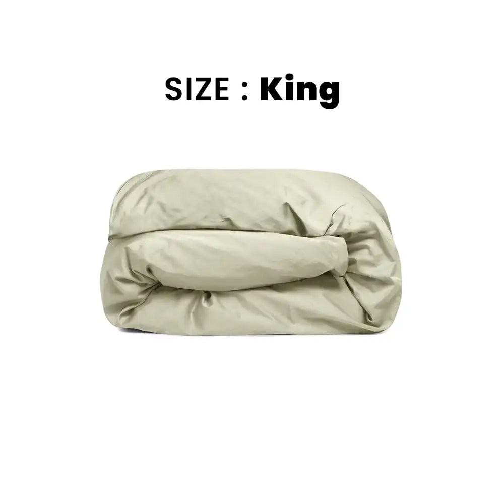 Designed especially for the hospitable setting of hotels, restaurants, and catering services, this premium-quality Giza Cotton King Duvet Cover in luminous Silver Green is as durable as it is sumptuous. Expertly fashioned from 100% cotton sateen with a luxurious 300 thread count, it combines function with elegance. Rust-free snap button closure and secure corner ties ensure perfect placement without effort, blending effortlessly into professional settings. Compelling for its wrinkle-free nature, it promises hassle-free maintenance for refined clientele.