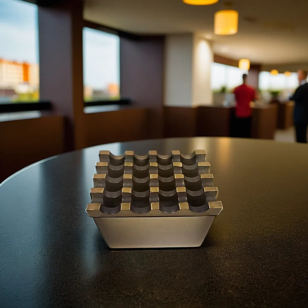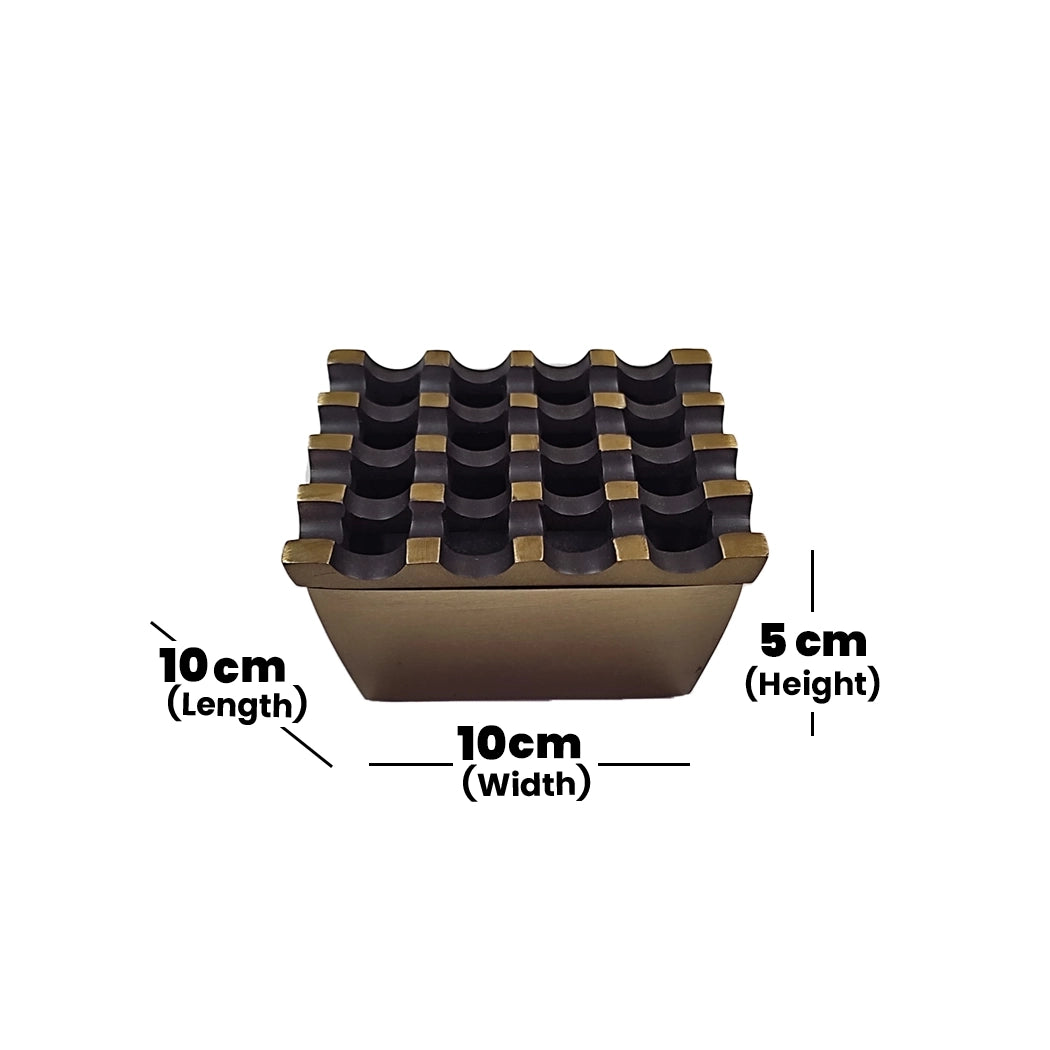 THS Pure Brass Square Ashtray with Brass Antique Finish - 16 Holes