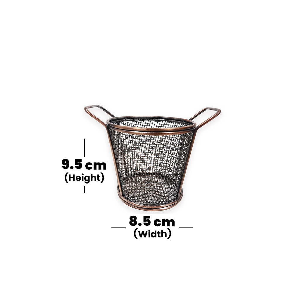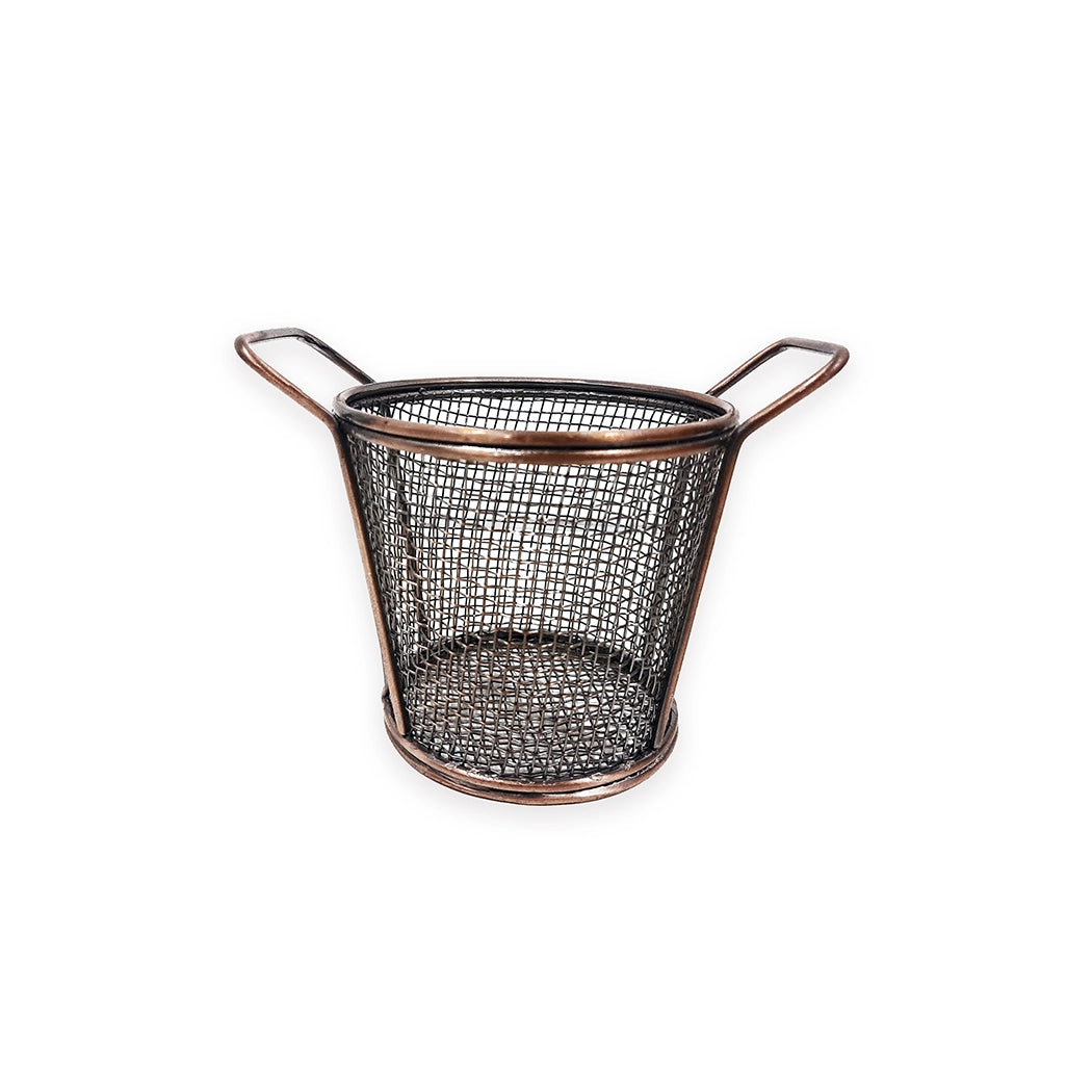 Introduce a touch of vintage elegance to your table setting with our THS Antique Copper Fries Basket. Crafted with meticulous attention to detail, this charming basket features a rustic copper finish, embodying the warmth and nostalgia of antique design. Its double handle design ensures easy carrying and serving, making it an indispensable item for restaurants, hotels, and catered events aiming for a distinctive and elegant presentation. This basket is perfectly sized for individual servings, enhancing the dining experience with its unique charm and practicality.